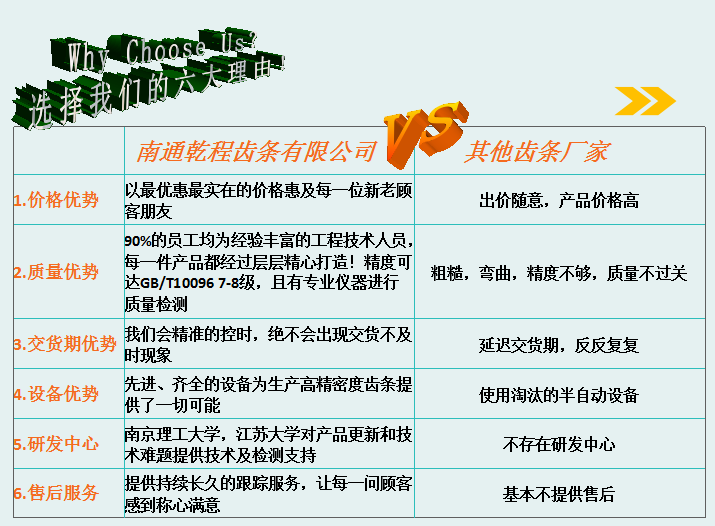 齒條也分直齒齒條和斜齒齒條,齒條辨別與直齒圓柱齒輪和斜齒圓柱齒輪配對(duì)運(yùn)用; 齒條的齒廓為直線而非漸開(kāi)線(對(duì)齒面而言則為立體),相當(dāng)于分度圓半徑為無(wú)量年夜圓柱齒輪 齒條的次要特點(diǎn) 齒條